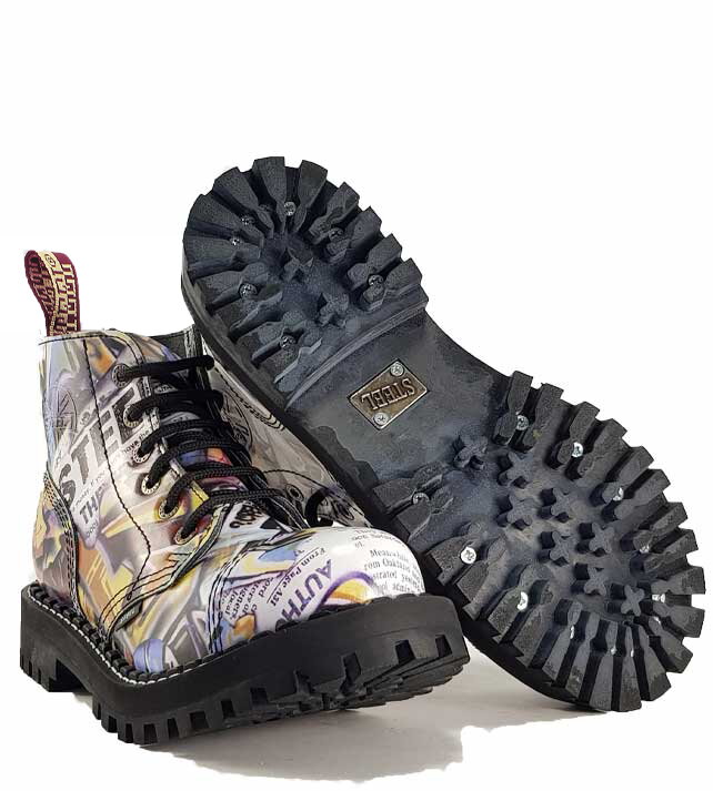 Botas Steel de caña media de 8 ojales, color graffiti, empeine de cuero, suela de caucho...